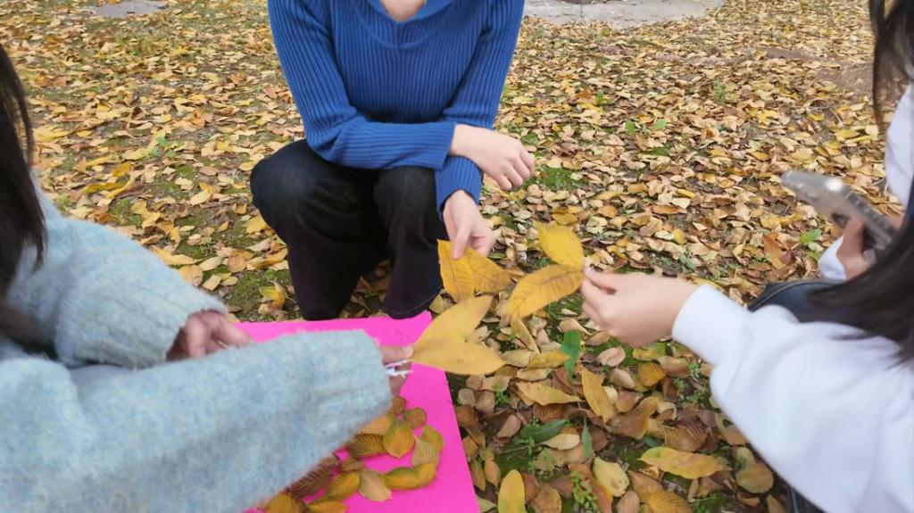 在活动尾声的“留秋·寄情”环节,同学们展示出自己亲手制作的作品,分享创作灵感,还伴着秋风朗诵秋日诗词,最后一同合影留念,让这美好瞬间得以永久定格。