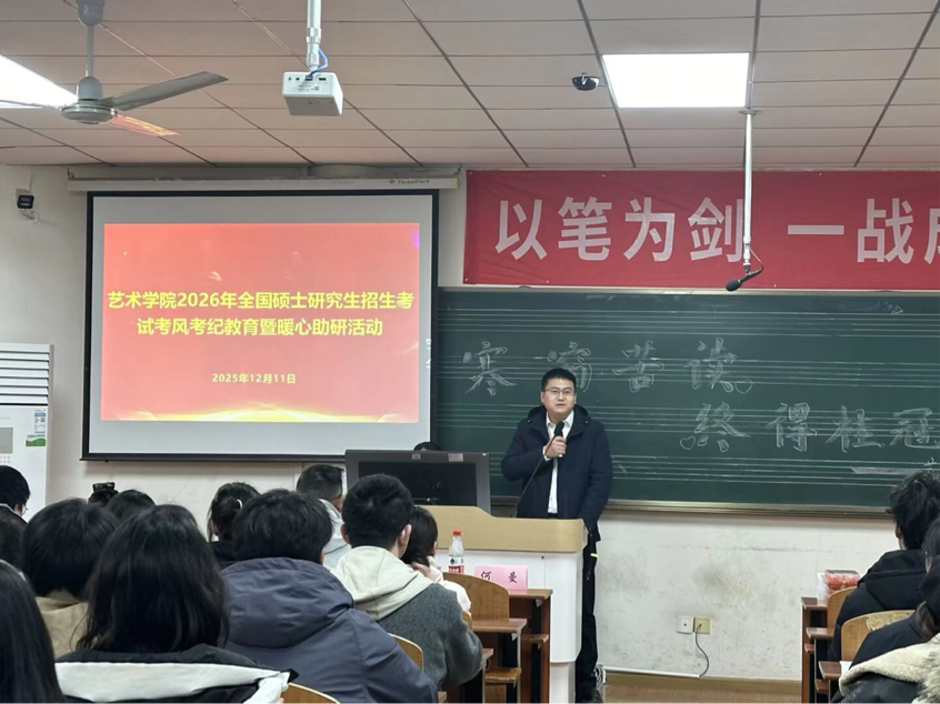 在领导寄语环节,曹军院长与学子们亲切交谈,详细了解他们的复习进度和实际需求。同时,结合不同艺术类专业的备考特点,他有针对性地为同学们提供冲刺建议和心态调节指导。他还不断叮嘱考研同学,在专注学习的同时,更要注意劳逸结合,以稳定平和的状态迎接挑战。他再次强调了诚信应考的重要性,祝愿全体考生不负韶华、不负努力,在研究生考试中取得优异成绩。