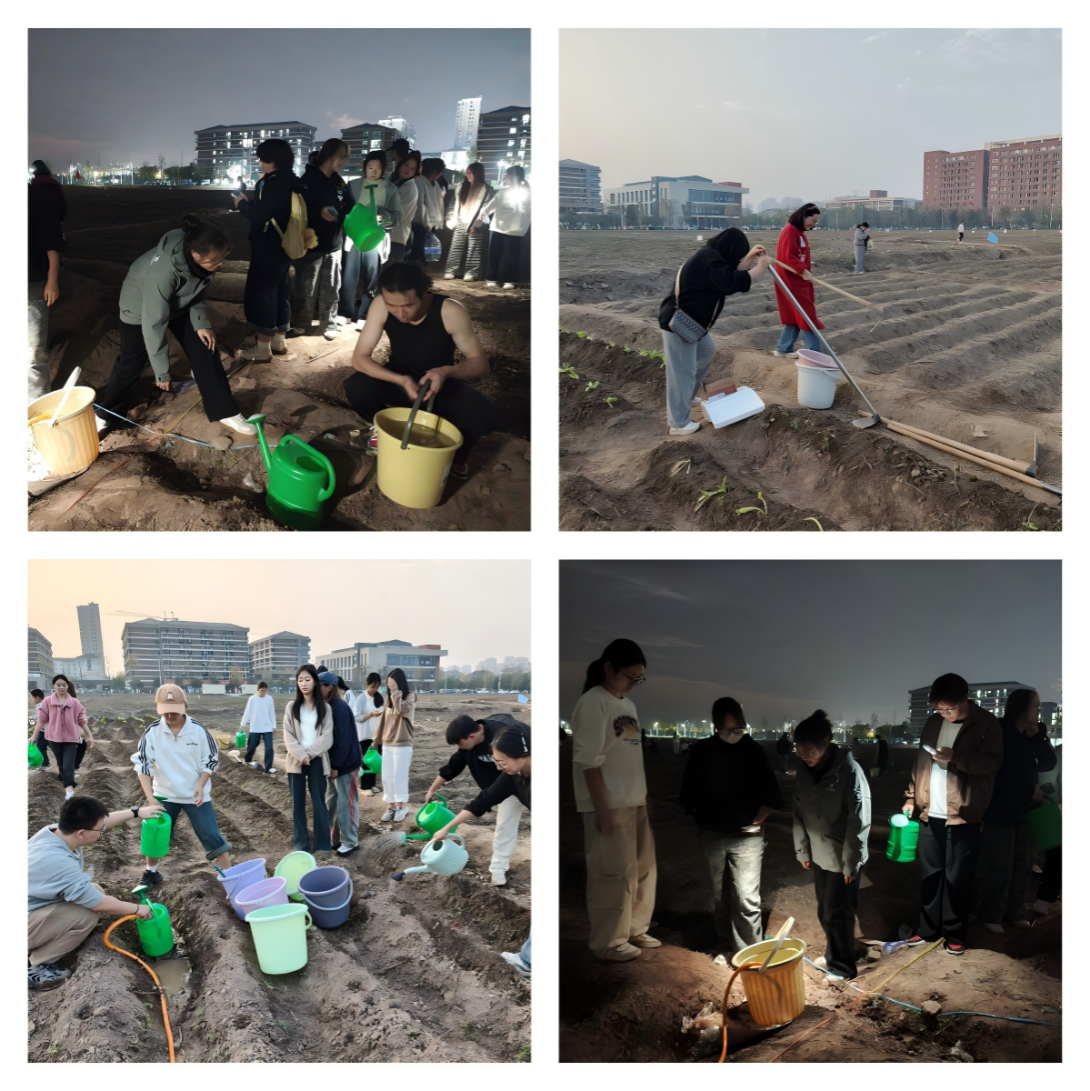 回溯劳动教育活动开展之初,学院以“劳动先锋团+小组包管”模式为抓手,将基地划分为多个责任田。由优秀学生骨干组成的劳动先锋团,带领各小组从土地开垦、杂草清理、土壤翻松起步,再到精准分垄、播撒菠菜与萝卜种子,每一个环节都凝聚着学子们的汗水。期间,学院党委副书记何曼多次带队深入基地,结合作物生长特性,手把手指导同学们掌握播种深度、间距控制等关键技术,各年级辅导员、班主任也全程参与,与学子们一同俯身劳作,在田间地头营造出师生协作的温馨氛围。