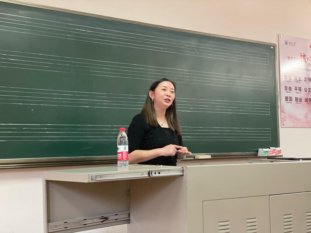 张凌云老师在讲座伊始,讲到一个好的演员不一定是好教员,一个好教员不一定是好演员,吸引了学生们的注意力。接着抛出问题:作为老师如何深入浅出地教好一堂课,她从制定教学计划、教学设计方案、课堂教学实施、教案书写格式和教学反思与改进五个方面给大家作出了分享。