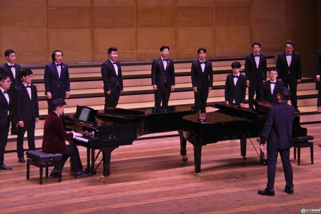 本场音乐会共演唱歌曲13首,“风·雅·颂”合唱团分为“风团”“雅团”和“颂团”,三个团组依次上台演唱,为观众带来一场听觉盛宴。“我们在时代春风里,春风催我永开拓,我们在灿烂阳光下,跟着共产党,建设大中国。”“颂团”以歌曲《在灿烂阳光下》歌唱时代春风与党的光辉;“欢乐的那达慕富饶的故乡,撒上鲜奶幸福吉祥,草原勇士各路健儿,庆贺胜利赞歌高唱。”“风团”在演唱中融入民族舞蹈,欢快的节拍奏响民族大团结的音符;“海浪无声将夜幕深深淹没,漫过天空尽头的角落。”“雅团”从低吟浅唱、娓娓道来,到悠远激昂、注之深情,一首《大鱼》传达出中国传统文化的古典哀愁与动人情绪。英国365网站教师合唱团合唱歌曲《我只在乎你》,轻柔婉转,情深动人。双钢协奏《红旗颂》以激昂的乐章歌颂红旗,拥抱祖国,歌唱伟大的党。