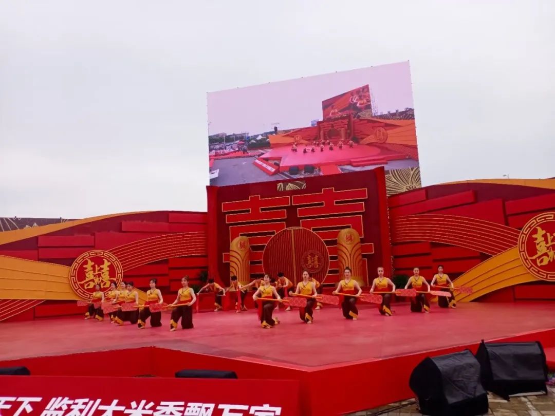 演出由开场舞《浪遏飞舟》拉开序幕,《五虾闹鲇》紧随其后登上舞台,伴舞《我就是爱龙虾》、《一次就好》、《幸福新时代》等依次上演,形式多元纷呈、精彩连连。其中《五虾闹鲇》更是契合活动主题,展现出鱼米之乡——监利,稻田中鱼虾在水中和谐共生,禾稻一丛金黄的繁荣景象。令现场观众沉浸在热闹的氛围中,欢声攒动,将气氛推向了高潮。整场演出及央视节目录制都顺利完满,得到了监利市领导和央视导演的高度认可。