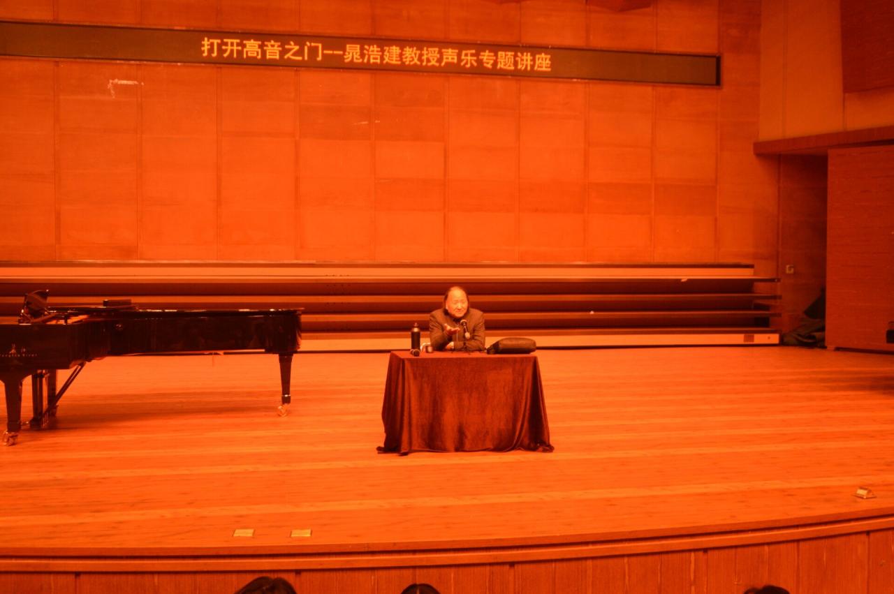 此次讲座由什么是正确的声音、如何突破高音和现场教学示范三个环节组成。讲座过程中,晁浩建教授有条不紊地分享着自己的经验,例如唱高音时要先联想到低音,体会位置的时候又要注意气息处理。在听到这一技巧方法后,有的学子已经准备跃跃欲试,可由于环境原因指得按捺住自己激动的心。教授又继续讲到在作品处理、声音使用等方面都要掌握歌唱平衡,包括歌唱中的哼鸣、通道、打哈欠、微笑等。讲解之余,还有同学上台现场演唱,老师根据个人情况,现场解决同学们的问题。晁浩建教授用丰富的授课经验,富有知识性、教育性、趣味性的授课理念和灵活适宜的讲解,使学生们在此次讲座中熟知和了解了声乐演唱基础理论知识的重要性。大部分学生表明将此次讲座上学习到的理论知识来指导自身的声乐学习,并在实践中细心地去体会去感受,勤奋加智慧的练习专业,希望在今后的声乐学习中获得更科学的歌唱状态,更有艺术表现力的演唱。
