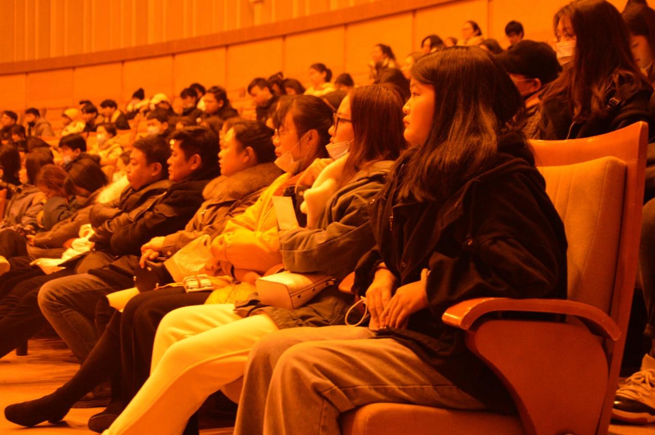 如果说上午的讲座是理论知识讲述,那么下午的音乐会就是晁浩建教授用实践的方式更深刻的传授同学们乐理的相关知识,为同学们带来了一场美轮美奂的视听盛宴。晁浩建教授、他的两位学生及梁明明老师为同学们分别演唱了《战士歌唱毛主席》《我的爱人你可听见》《怀念战友爱永在》等歌曲,演唱过程中扎实的演唱功底和富有感染的表现力深深地打动了在场的每一位听众。
