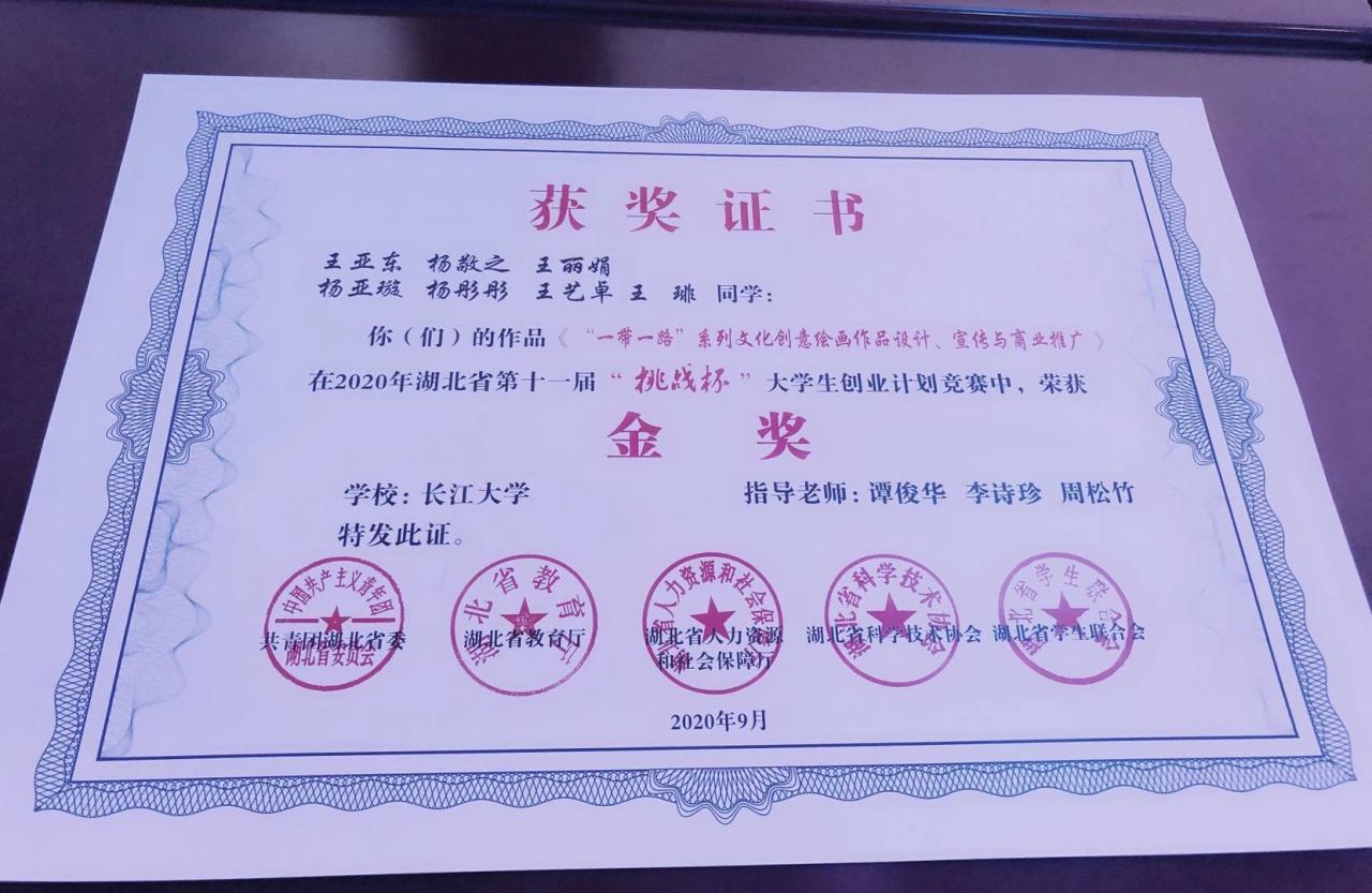 9月25日,由共青团湖北省委、湖北省教育厅、湖北省人力资源和社会保障厅、湖北省科学技术协会、湖北省学生联合会主办的湖北省第十一届“挑战杯”大学生创业计划竞赛终审决赛落下帷幕。由我院周松竹老师指导的《“一带一路”系列文化创意绘画作品设计、宣传与商业推广》项目名列前茅突出重围,顺利进军国赛。