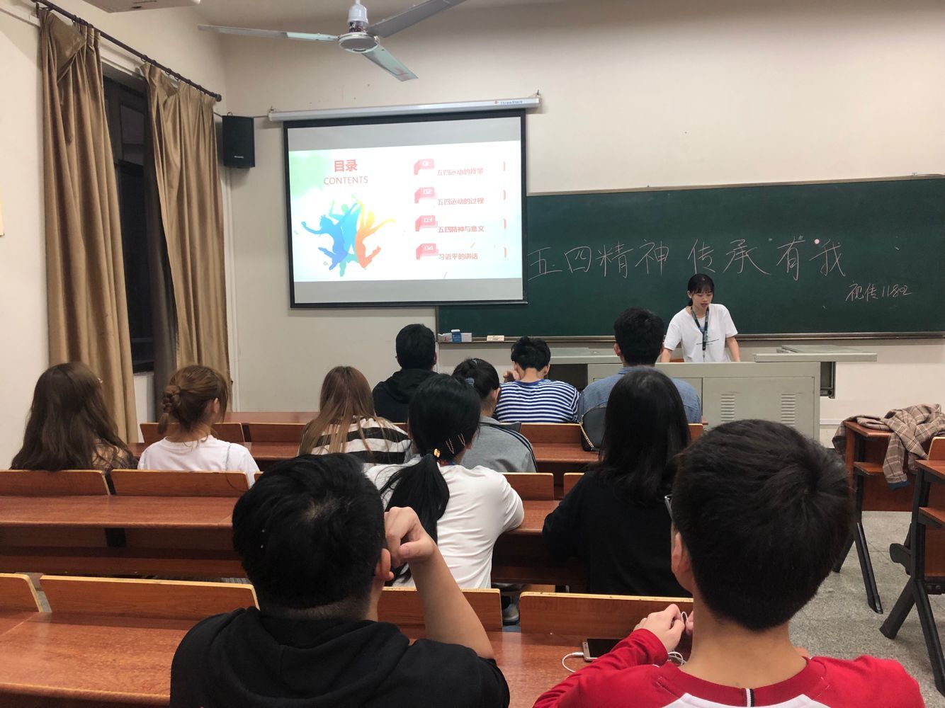 (通讯员:陈渊宇)1919年发生的五四运动距今已100周年,在这100年间,五四运动为中国翻天覆地的变化奠定了基础,从五四运动到中国特色社会主义进入新时代,我国迎来了站起来、富起来、强起来的伟大飞跃,其科学精神、爱国精神等影响着一代又一代的中国青年,激励一代代青年持续奋进。为此,为了响应五四精神落实,365英国上市公司团委组织积极动员各年级开展“五四精神,传承又我”主题团日活动。在新时代新形势下,我们青年要继承和发扬五四精神,牢记党的使命和团的嘱托,让其更好地引领人们承担历史使命与时代责任,让五四精神为党和国家建设提供源源不断的动力。