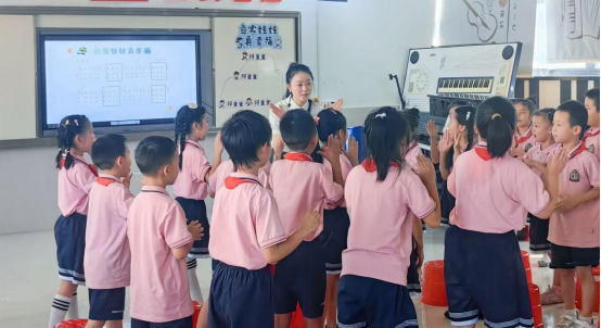 荆州实验小学李秋君老师《打花巴掌》示范课中,将方言童谣与体感节奏游戏结合;章秋杰《口风琴音阶歌》示范课中,用彩色贴纸标记琴键,帮助零基础学生快速掌握音阶。让乡村教师直呼原来音乐课还能这样上!松滋市文欣老师特别记录下用矿泉水瓶制作沙锤的创意教具设计。“看到孩子们在音乐中绽放的笑容,我更加坚定了做好乡村美育的决心。”文欣动情地说。