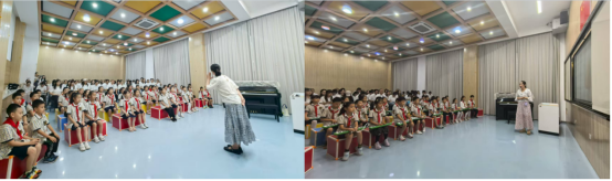 参训教师在完成跟岗能力目标达成评价分析、团队课例研究,声乐发声、合唱指挥技能训练等系列培训后,于教师节当日参观了荆州实验小学和沙市实验小学的音乐文化建设,即被学校的音乐生态所触动——专业化的声学设计、精致的装饰风格,配合丰富的乐器配置的美育空间矩阵。随后,参训教师深入课堂观摩教学实践,并参观了学校丰富多彩的课后服务社团排练活动。