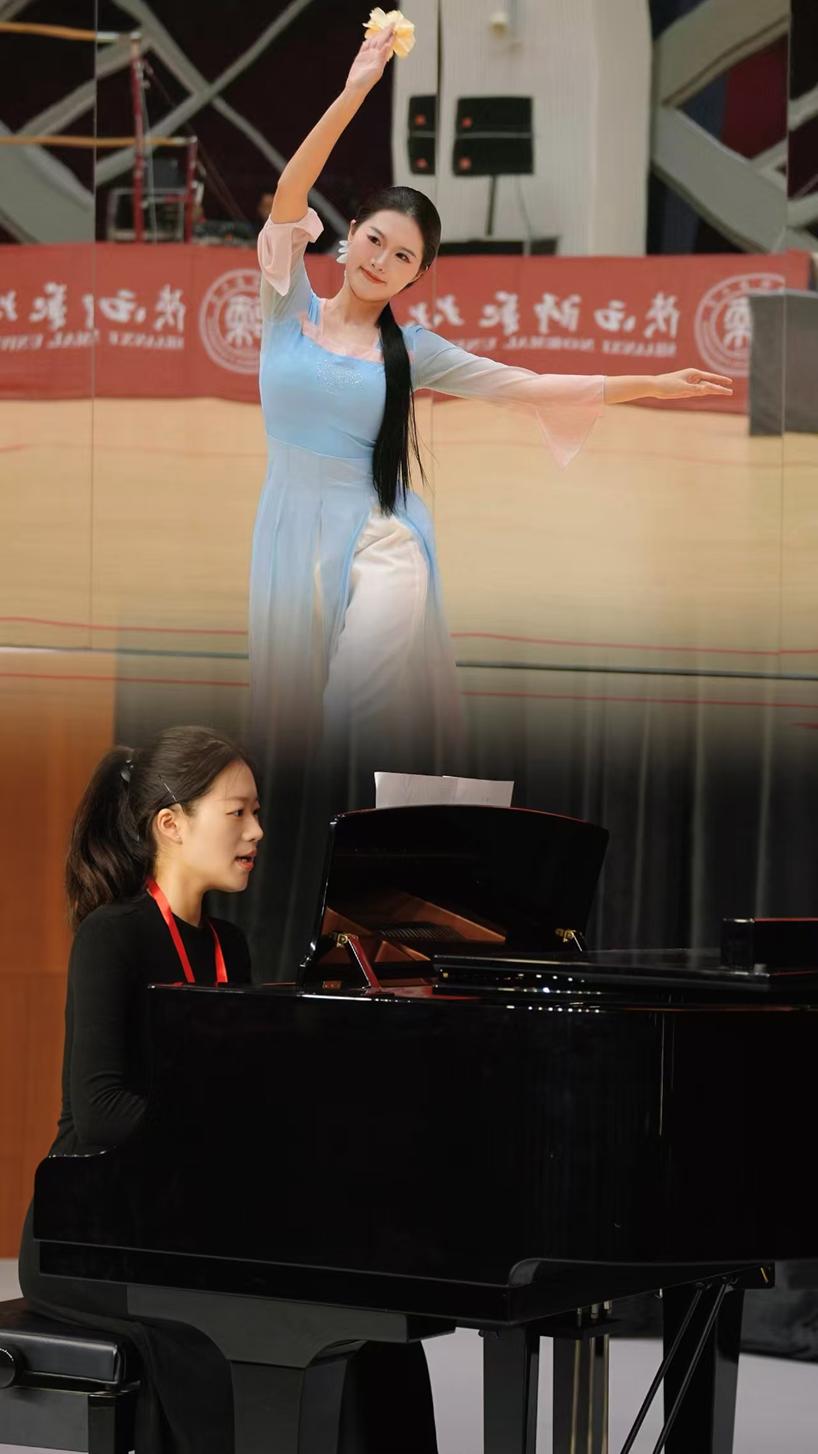 胡慧玉演绎传统戏曲选段,唱腔清亮、身段传神,具象化传统艺术与音乐教育融合路径;徐菲悦呈现戏剧独白片段,凭饱满情感展现表演功力;宋孟芽表演古典舞,身段柔美、韵律精准,诠释东方审美。团队在合唱指挥抽题环节沉着应对,即兴弹唱以灵活转调、适配织体获认可。
