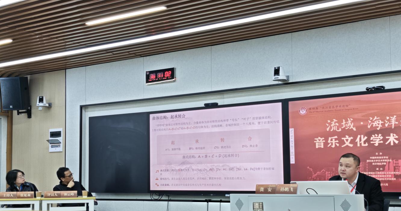 (通讯员 何逸帆)2025年11月15日至16日,由中国传统音乐学会、湖北省文学艺术界联合会与武汉音乐学院联合主办的“流域·海洋水系音乐文化学术研讨会”在武汉举行。我院孙鹏飞老师携其研究团队应邀参会并作专题发言,充分彰显了我院在传统音乐研究领域的学术积淀与师生的专业风貌。