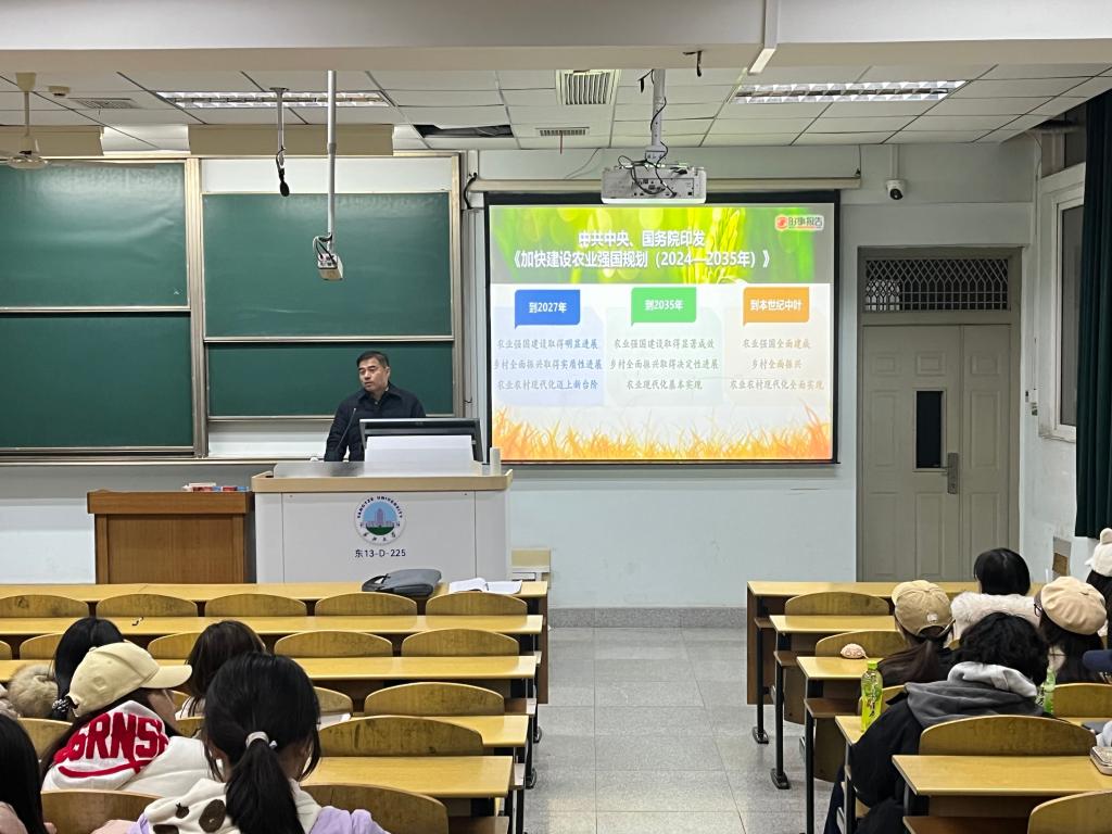 (通讯员 孙岳)11月20日晚,学校党委常委、副校长许锋在13教D225教室,以“阔步迈向农业强国”为主题,为365英国上市公司学子带来一堂内容丰富、立意深远的“形势与政策”课程。强国必先强农,农强方能国强。许锋率先从战略全局着眼,系统地阐述了加速建设农业强国的重要意义。他着重指出,若无农业强国,便无整体的现代化强国,若无农业农村现代化,社会主义现代化便是不全面的。农业保障的是生命安全、生存安全,更是极端重要的国家安全。