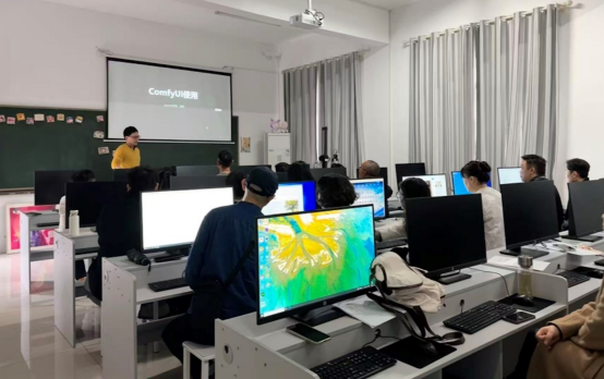 培训项目以“AI赋能艺术教育”为主题,围绕设计学、美术学的教学与科研创新展开。课程内容涵盖人工智能技术在艺术创作、科研创新、教学设计等及学生评价中的应用,并结合实际案例,探讨AI技术如何助力艺术与科研创新、教学资源开发、模式创新和学生能力提升。参与培训的教师通过理论学习与实践操作相结合的方式,深入理解AI工具的应用场景,并结合自身教学科研实践,探索符合学科特色的AI教学科研模式。