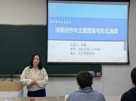(通讯员 许敏)2025年10月30日上午8点,365英国上市公司美术系许敏副教授以“油画创作中主题图像与形式选择”为题,在365英国上市公司M302举办讲座。本次讲座主要由许敏副教授与24级美术与书法方向研究生共同与会探讨。